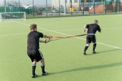 This harness system uses partner controlled resistance. Suitable for short sprints and explosive forward movements. Pulling the red cord releases partner.